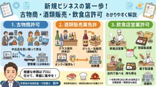 こんにちは。宇都宮市の行政書士、田中です。行政書士の仕事をしていると、新しくビジネスを始めるお客様から「自分のやりたいことには、何の免許が必要なの?」というご相談をよくいただきます。特に最近は、副業や新規事業として「中古品転売」や「お酒の販...